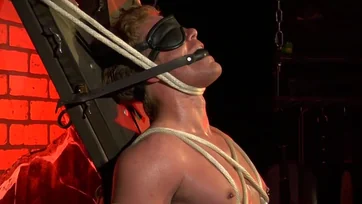 Hot male stands in ropes, fully restrained and ready for his anal punishment