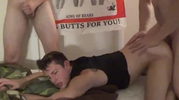 Doggystyle blowjob with two dudes who love sucking