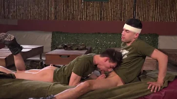 Fresh jizz on his lips after this fine boy sucks cock and fucks