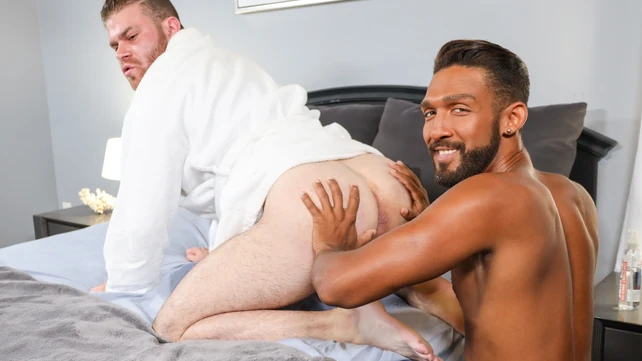 Black due lets white lover throat his BBC ahead of enjoying anal sex