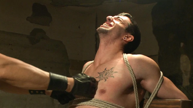 Nude bondage makes Brian Bonds endure brutal anal sex