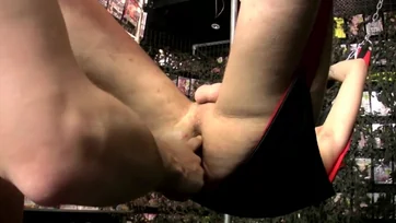 Male slave feels dominant partner working his dick in rough fetishes